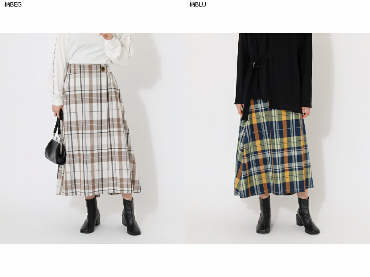 カラフルなカラーは、大柄のチェック柄でインパクトのある今年らしいフレアースカートです。