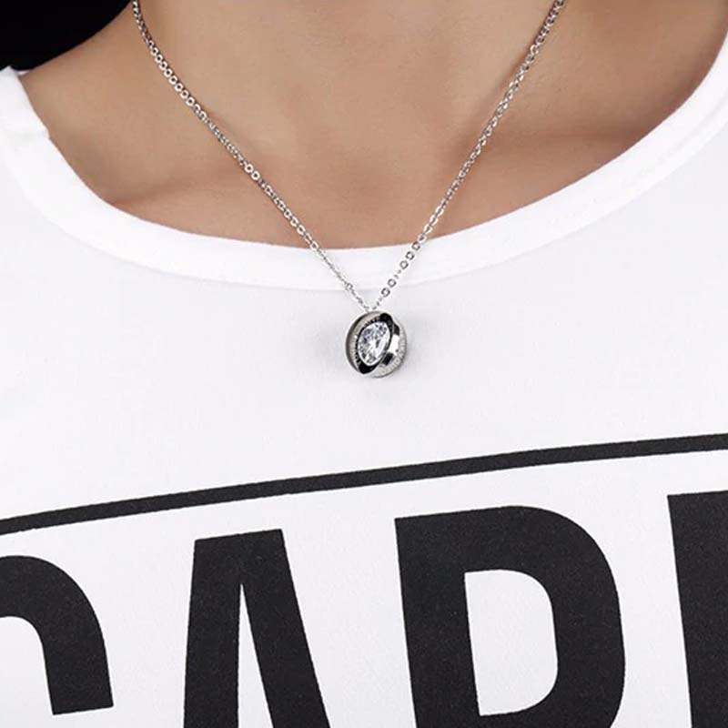 [ペアルック用 プレゼント] ジルコニアラブリングネックレス ペアセット メンズ レディース お揃い カップル 男性 女性 ネックレスチェーン 首飾り チョーカー サージカルステンレス316L ピンクゴールド シルバー クリスマス 英語 メッセージ クリスタル ブラック 黒色